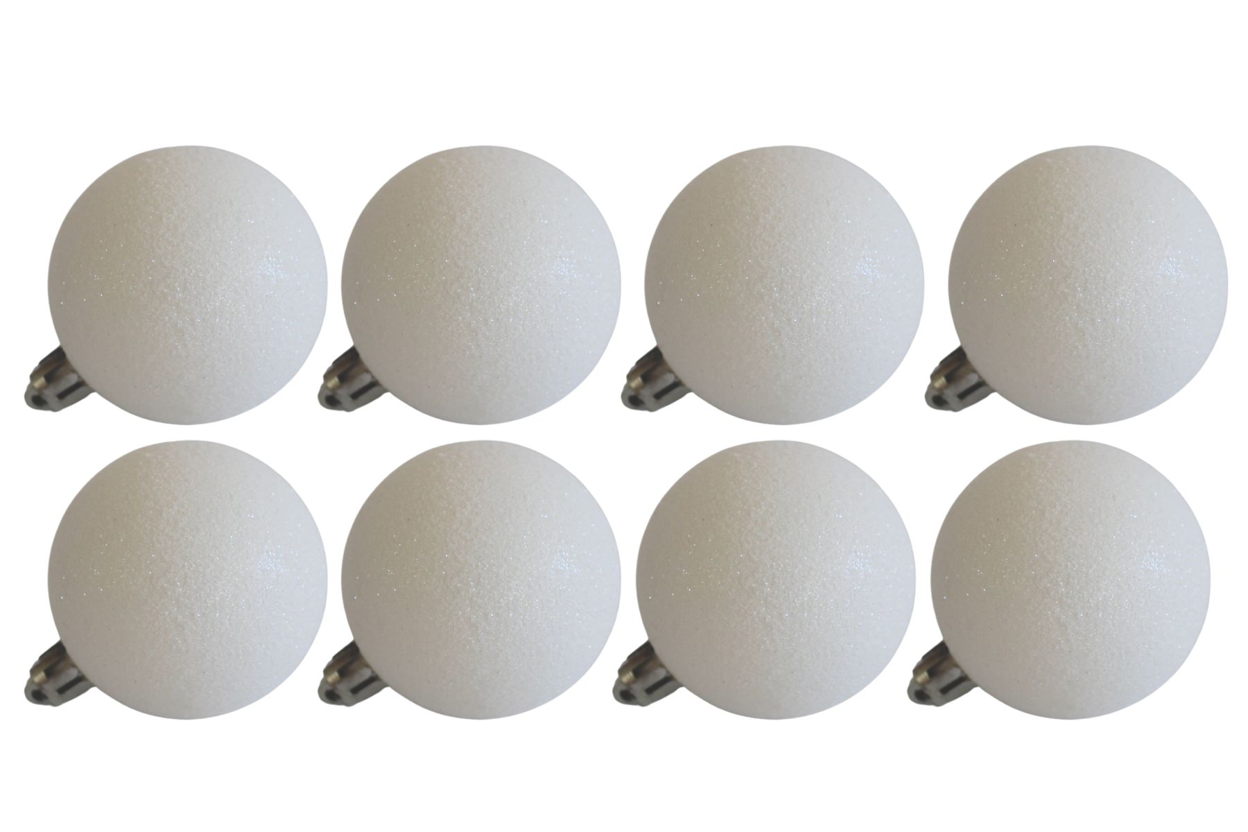 Biele plastové gule s trblietkami 8cm 8ks