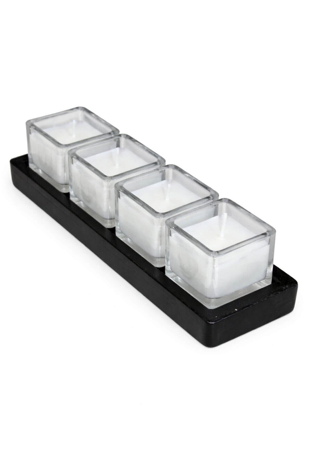 Rozmery: sviečka šírka 4,5 cm, výška 4,5 cm, hrúbka 4,5cm. Tácka: dĺžka 20cm, výška 2cm, hrúbka 6,5 cm