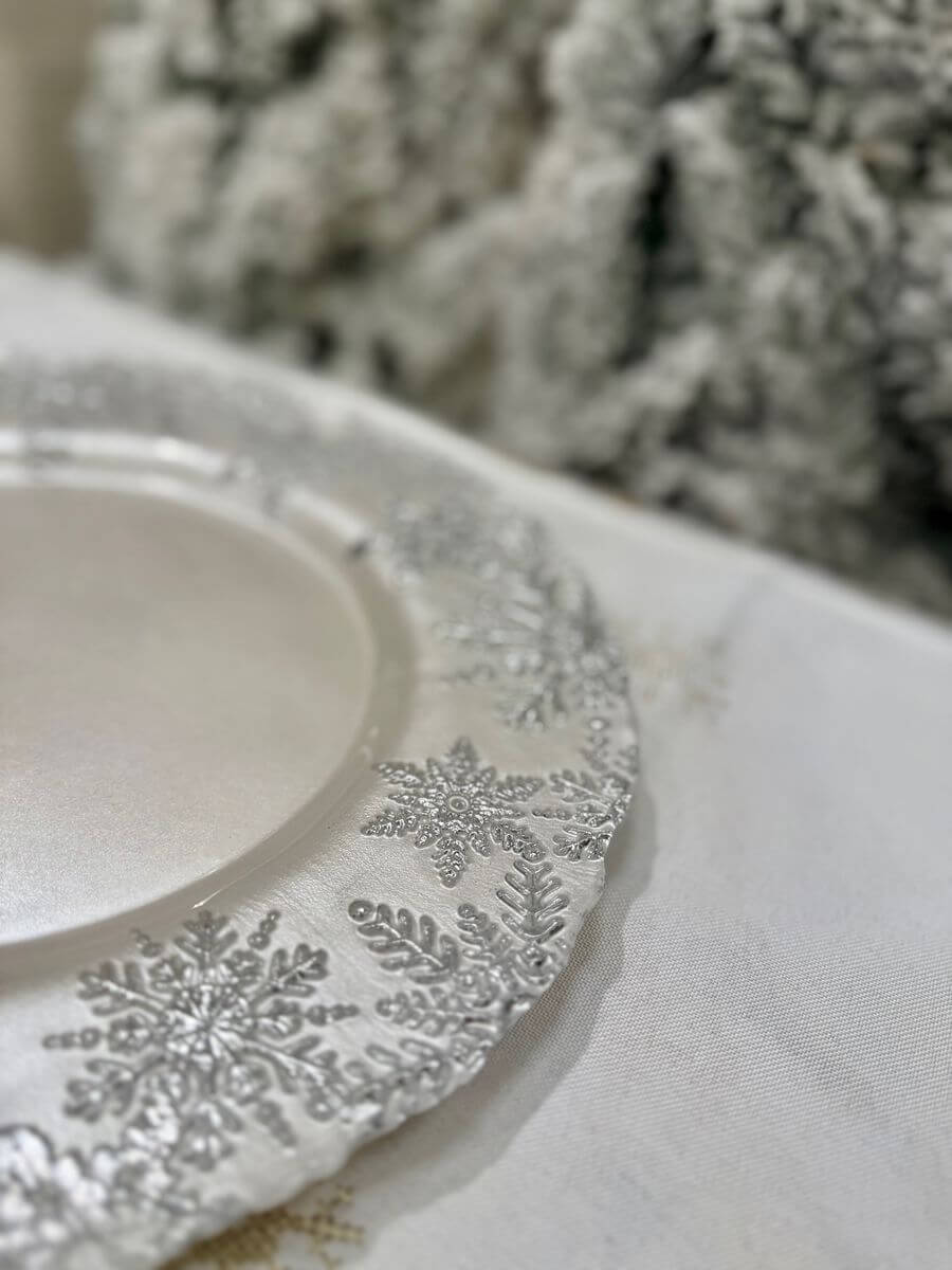 Bielo strieborný sklenený vianočný tanier 33cm
