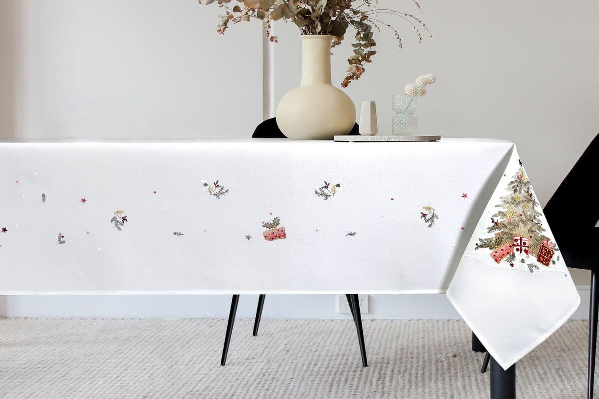 Krásny, detailne vypracovaný obrus s vianočným motívom je ideálny ako doplnok k sviatončnému stolovaniu.