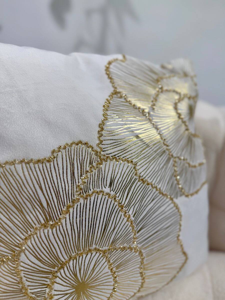 Dekoračný vankúš je veľmi pekným doplnkom do interiéru. Zamatový dizajn so zlatým dekorom pôsobí luxusne a originálne. Poťah vankúša je príjemný, mäkký na dotyk a je odnímateľný pomocou zipsu.