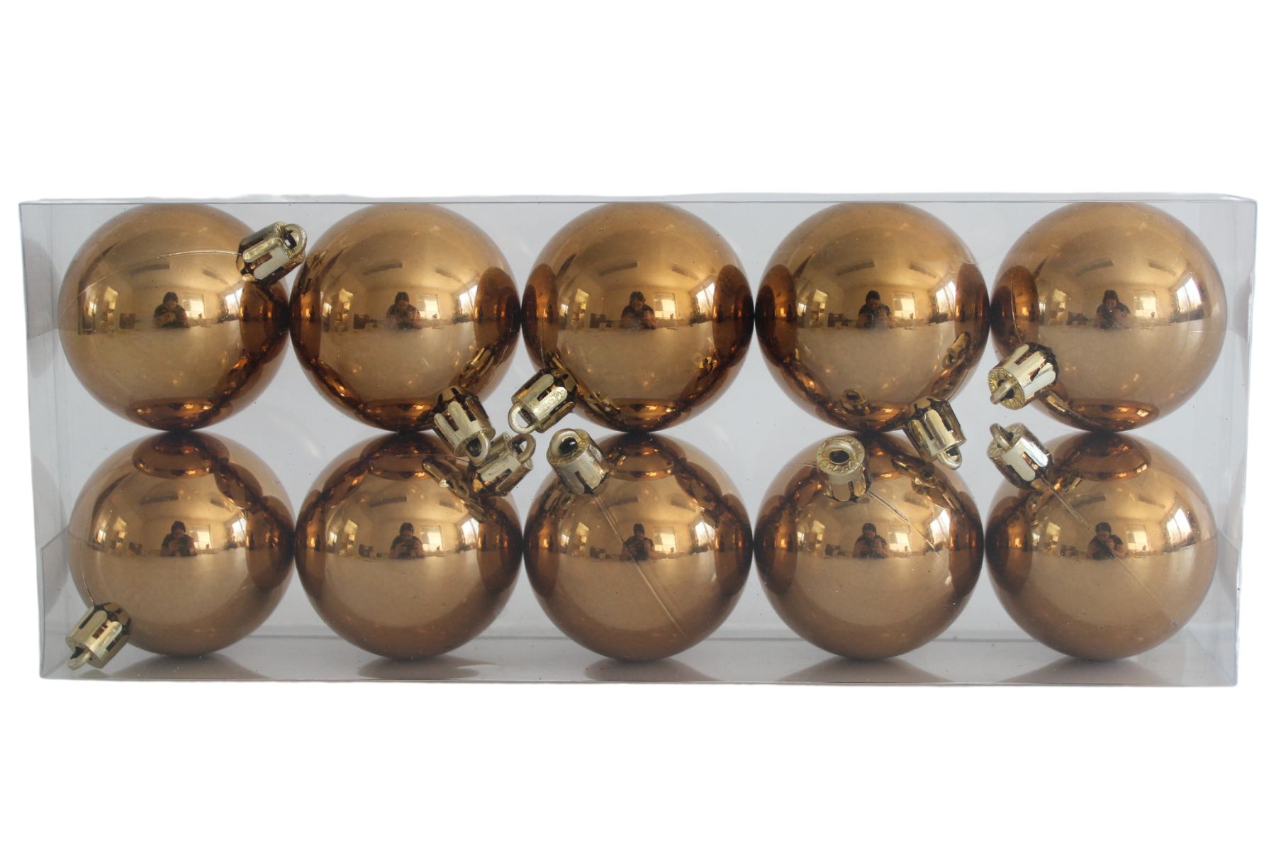 Bledohnedé plastové gule sú vhodné na zavesenie na vianočný stromček alebo ako dekorácia do vianočných aranžmánov a vencov. Hnedá farba patrí k prírodným Vianociam.