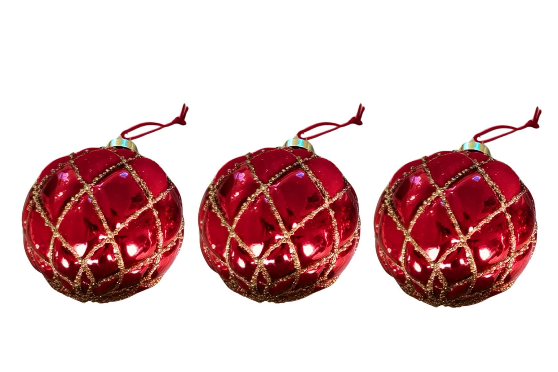 Červené sklenené vianočné gule Velour 3ks 10cm