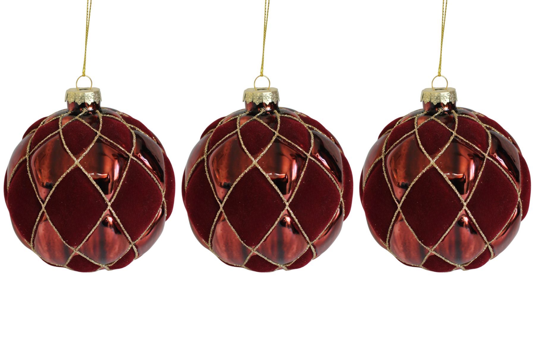 Červeno zlaté sklenené vianočné gule 3ks 10cm