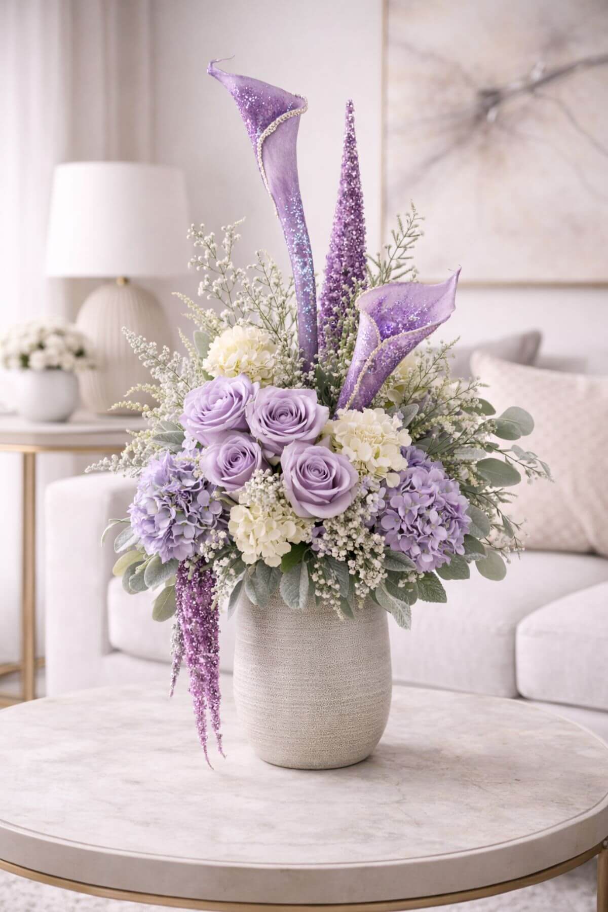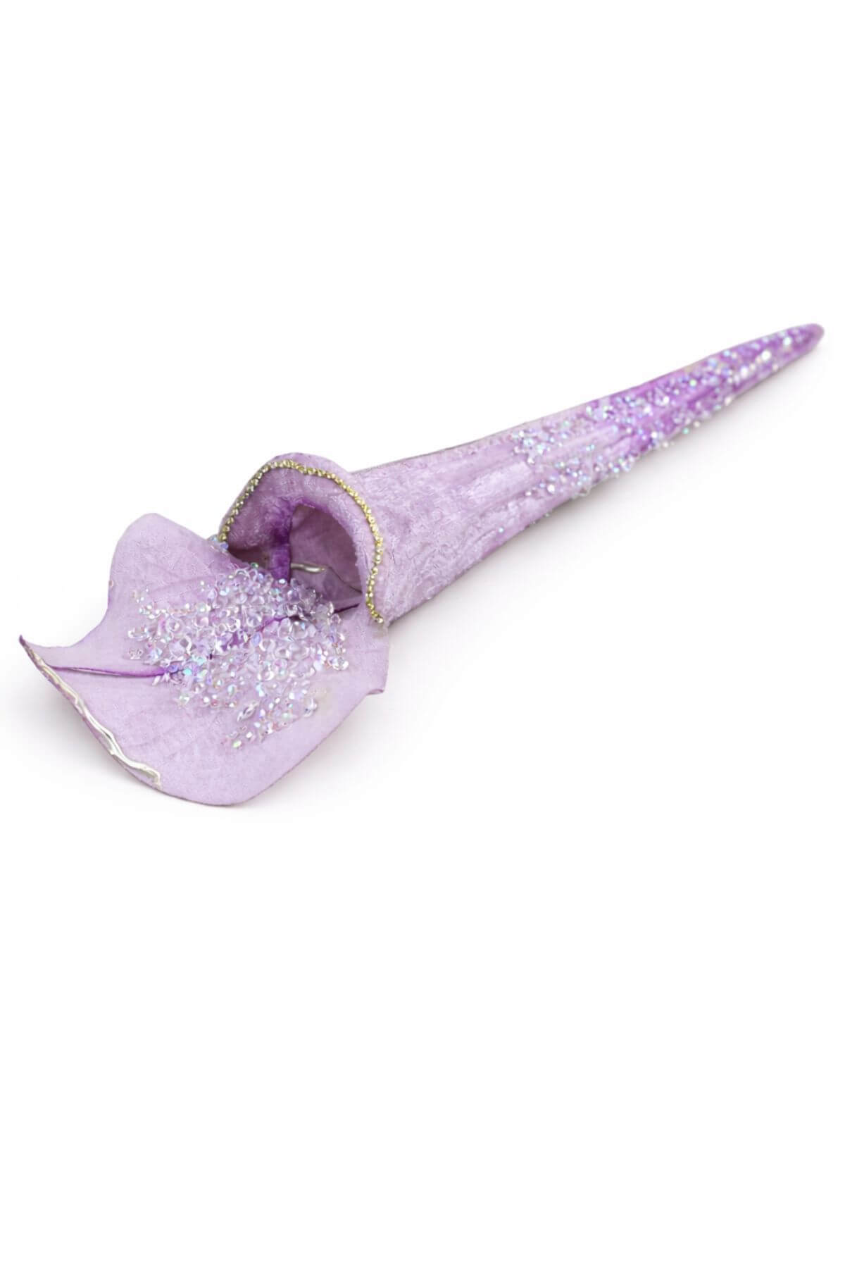 Fialová zamatová umelá saracénia zdobená kamienkami, vhodná na výrobu luxusných aranžmánov.