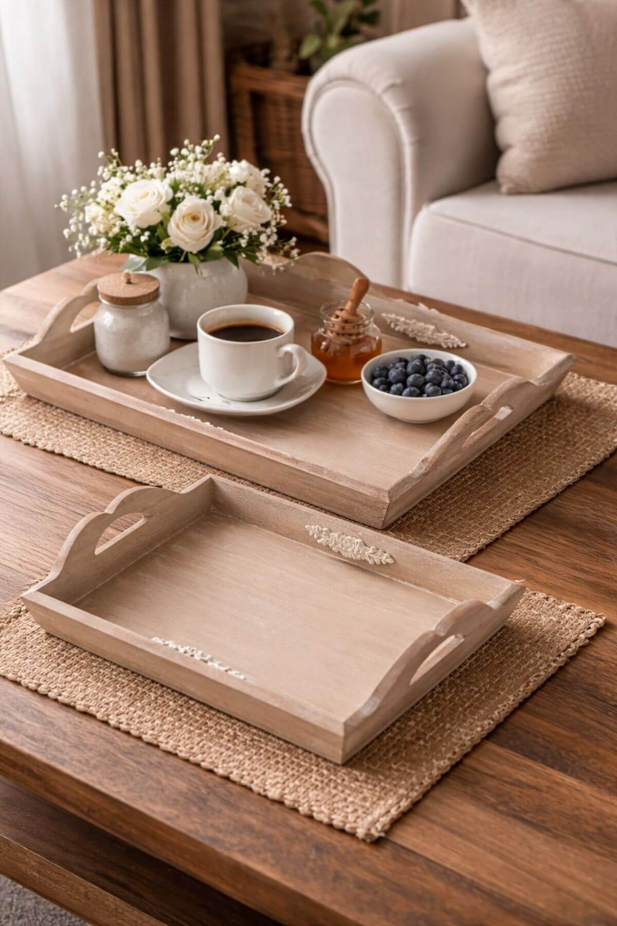 Hnedé drevené vintage tácky 2-set