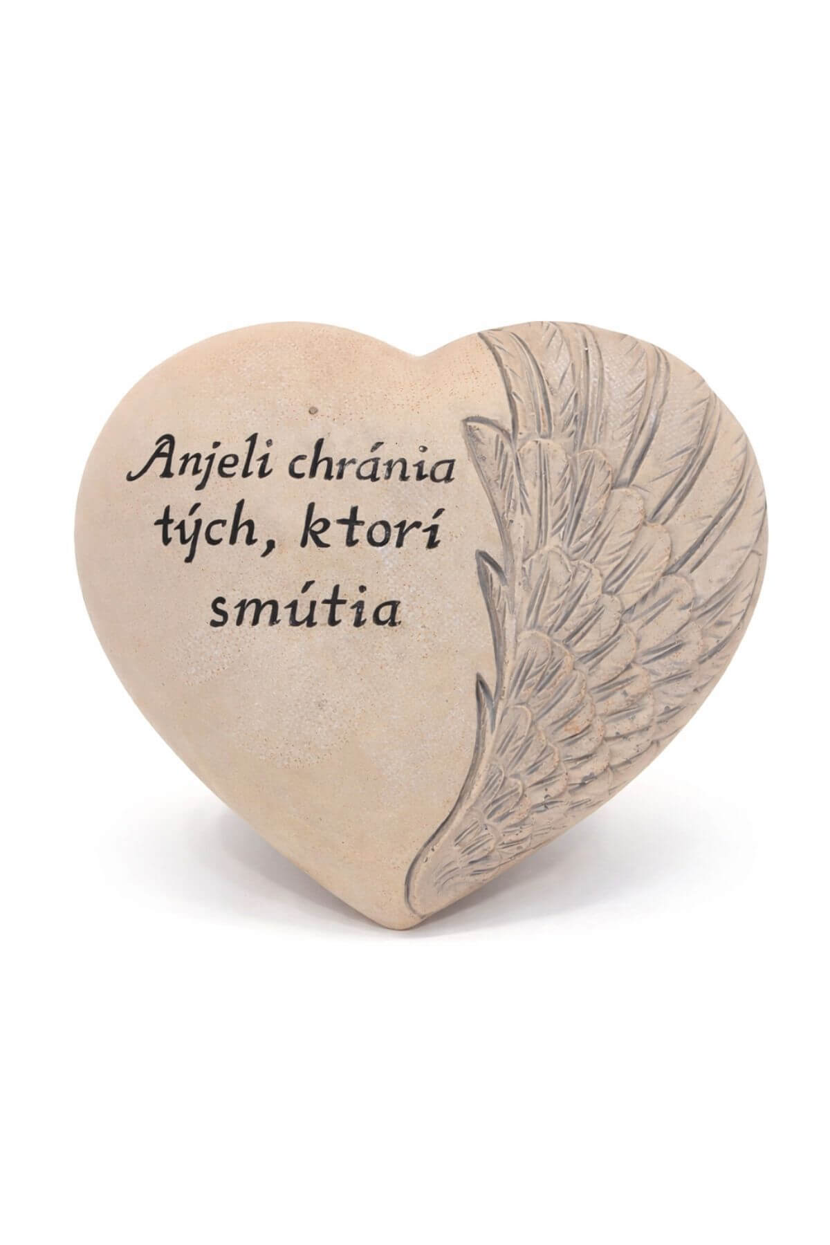 Hnedosivé srdce na hrob v gotickom štýle s jemnou patinou a s reliéfom "Anjeli chránia tých, ktorí smútia". Je vhodné ako dekorácia na hrob aj ako prvok do aranžmánov a ikebán