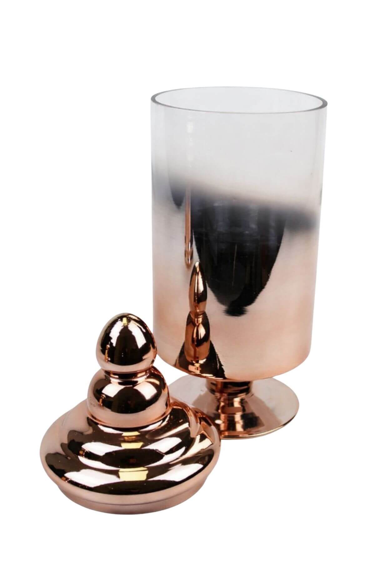 Medená lesklá sklenená dóza na podstavci 35cm
