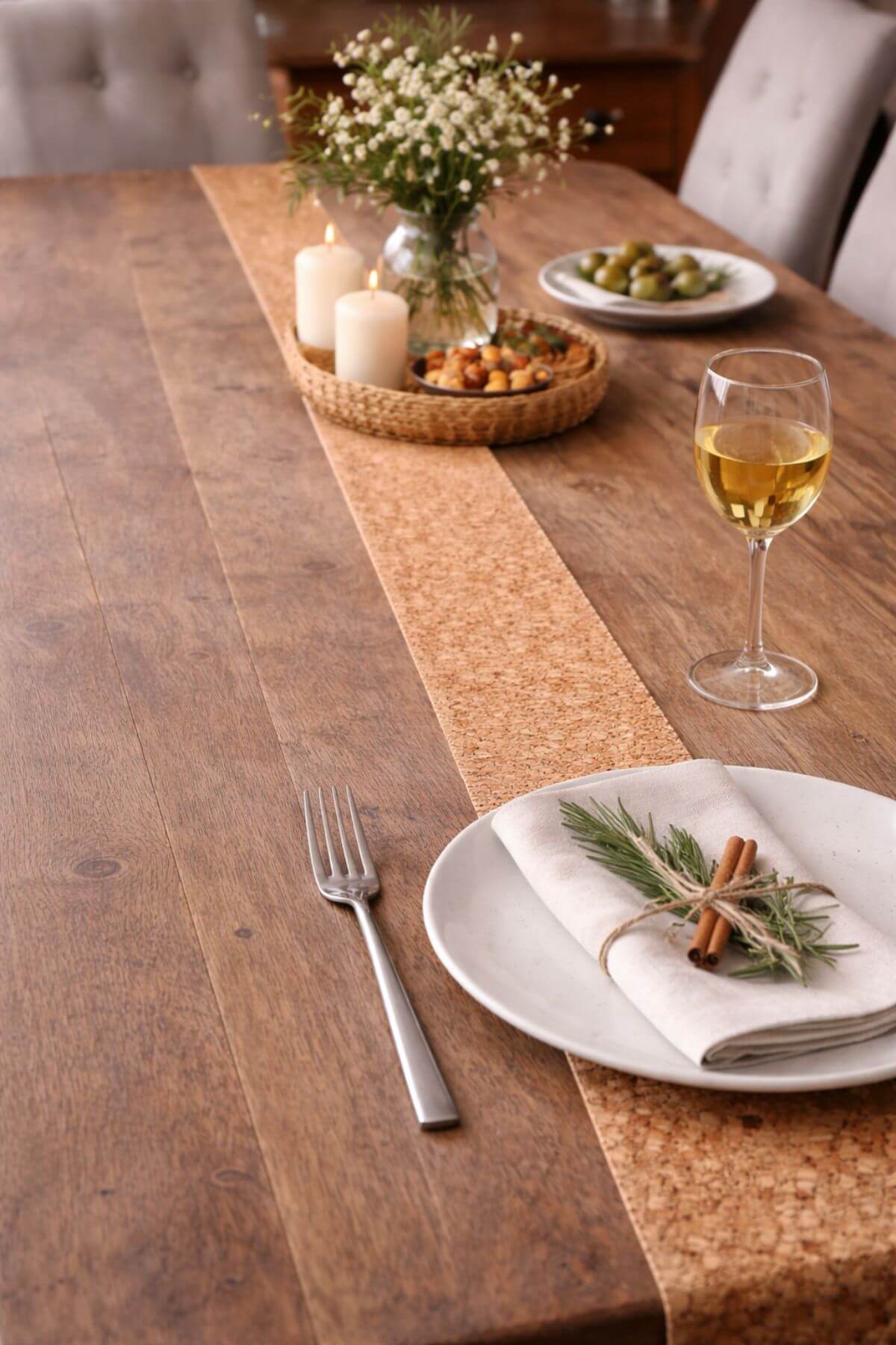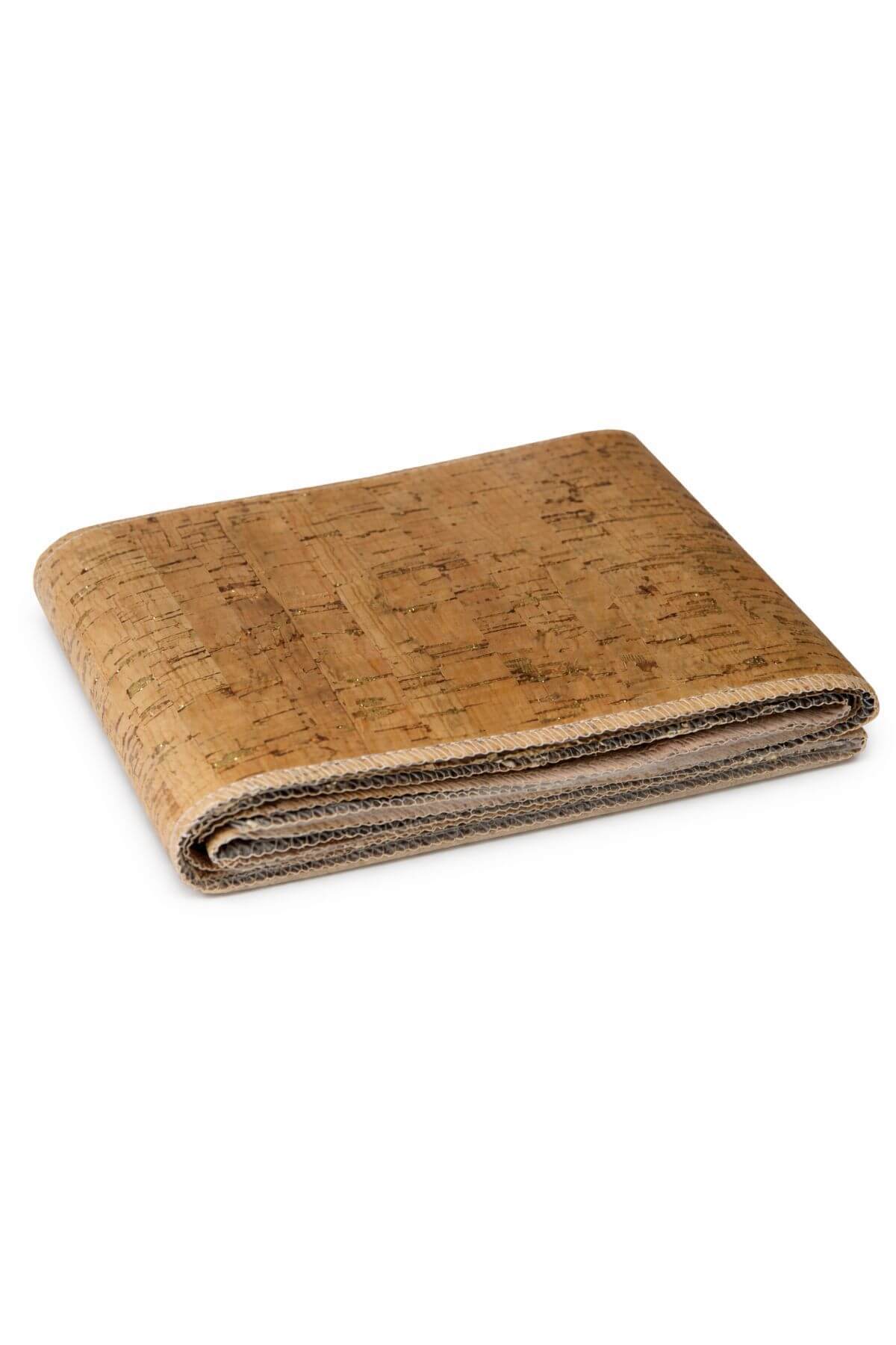 Hnedá natur korková štóla so zlatým glitrom na látkovom základe je vhodná na vianočné aranžovanie.