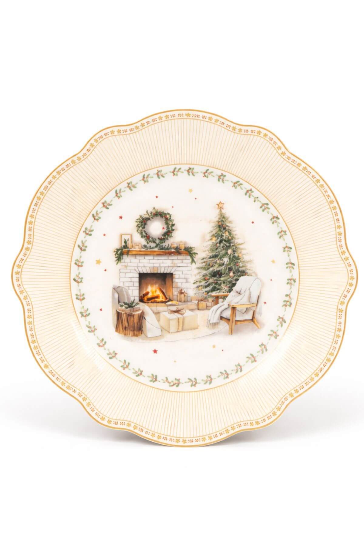 Krásny, detailne spracovaný plytký tanier s vianočným motívom. Porcelánový tanier je vhodný na servírovanie jedál počas Vianoc. Krásne vynikne na štedrovečernom prestretom stole.