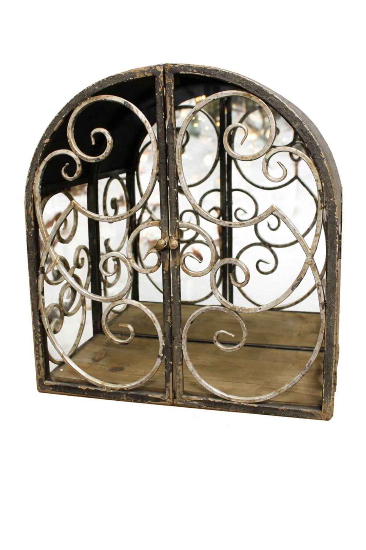 Rusty čierna kovová skrinka so zrkadlom