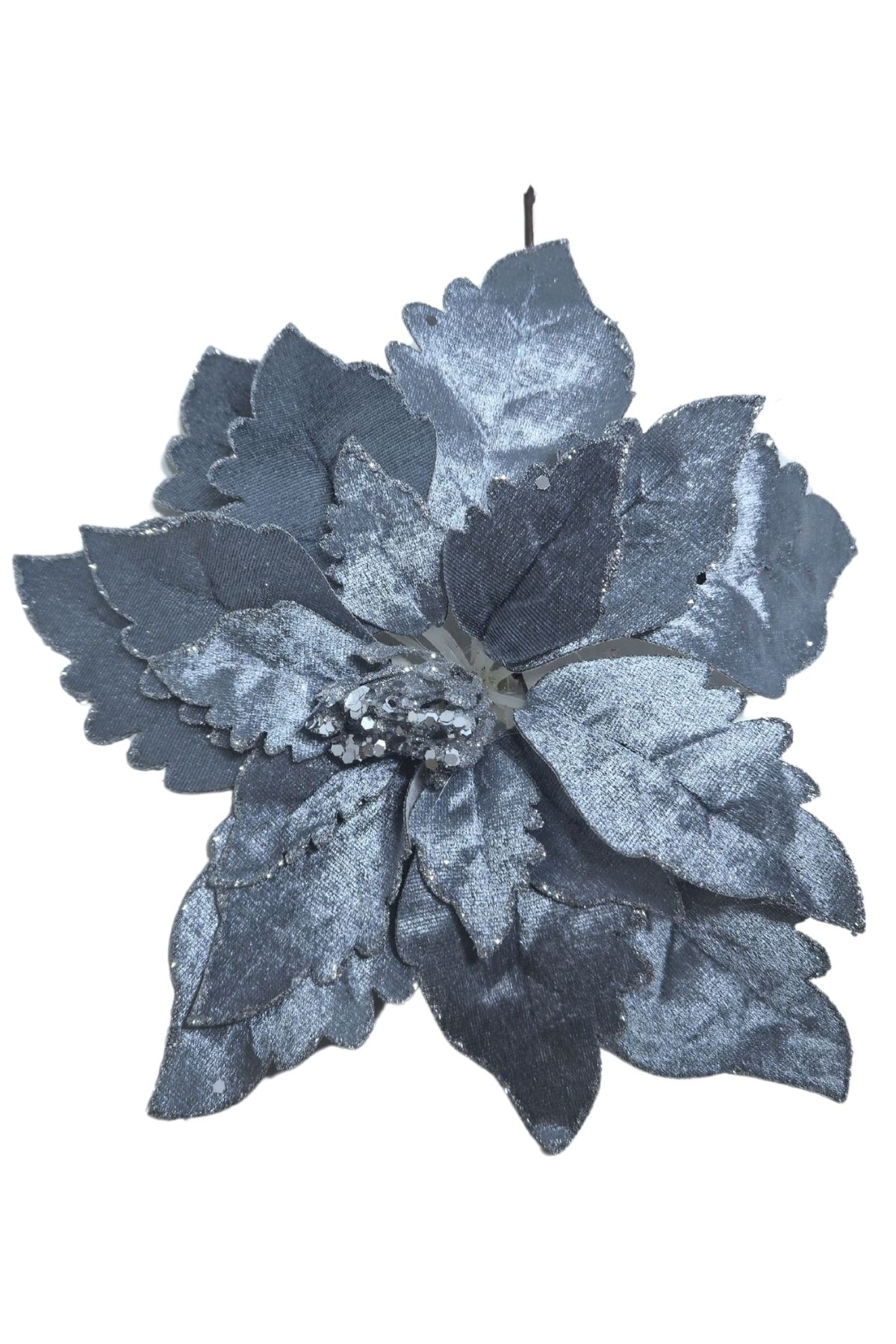 Sivo strieborná umelá vianočná ruža na stromček je krásna ozdoba, ktorá pomáha vytvoriť sviatočnú atmosféru a dodáva vianočnému stromčeku elegantný nádych. Je vhodná aj ako dekorácia do vianočných aranžmánov a adventných vencov.