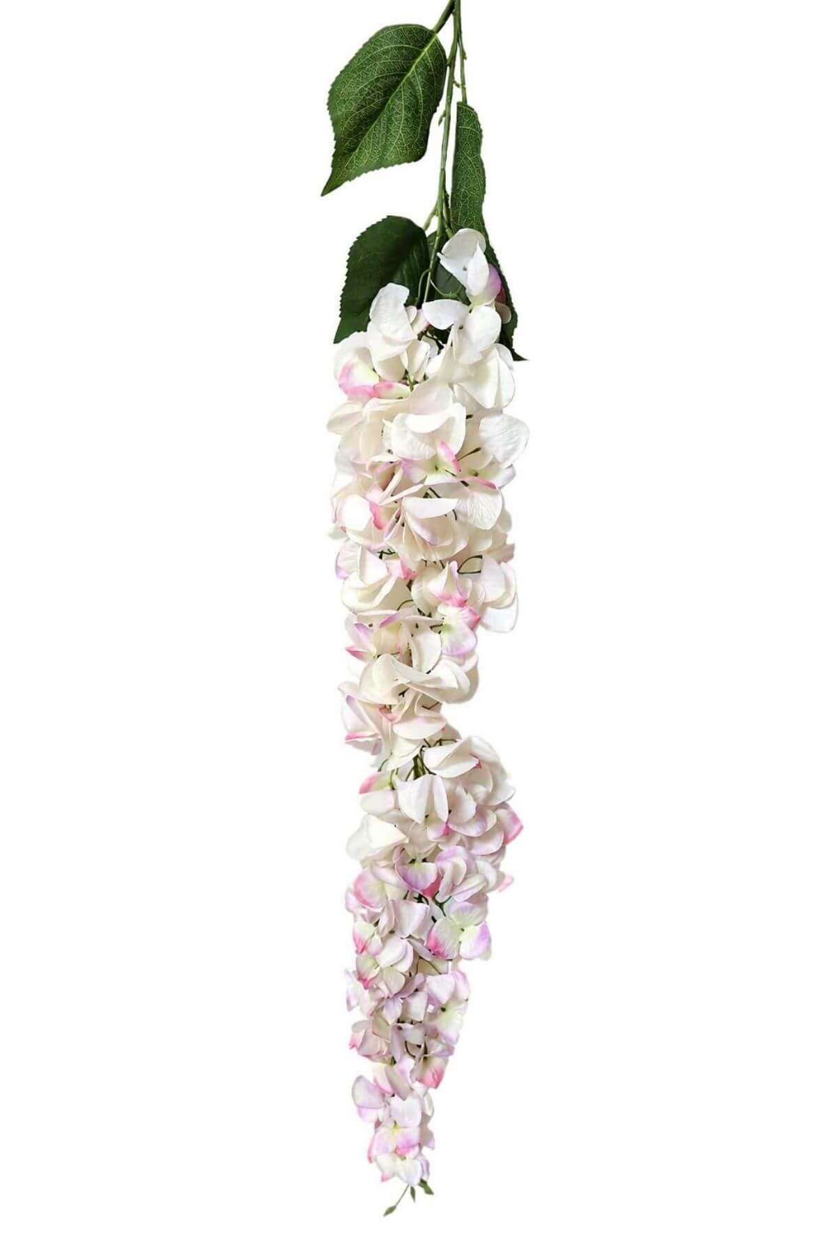 Bielo fialová umelá veľkokvetá predĺžená hortenzia, na stopke jeden výhonok a pár lístkov. Veľkosť kvetov 6,5cm, kvietky sa postupne zmenšujú, krásny prirodzený efekt. Materiál je jemný a príjemný na dotyk.