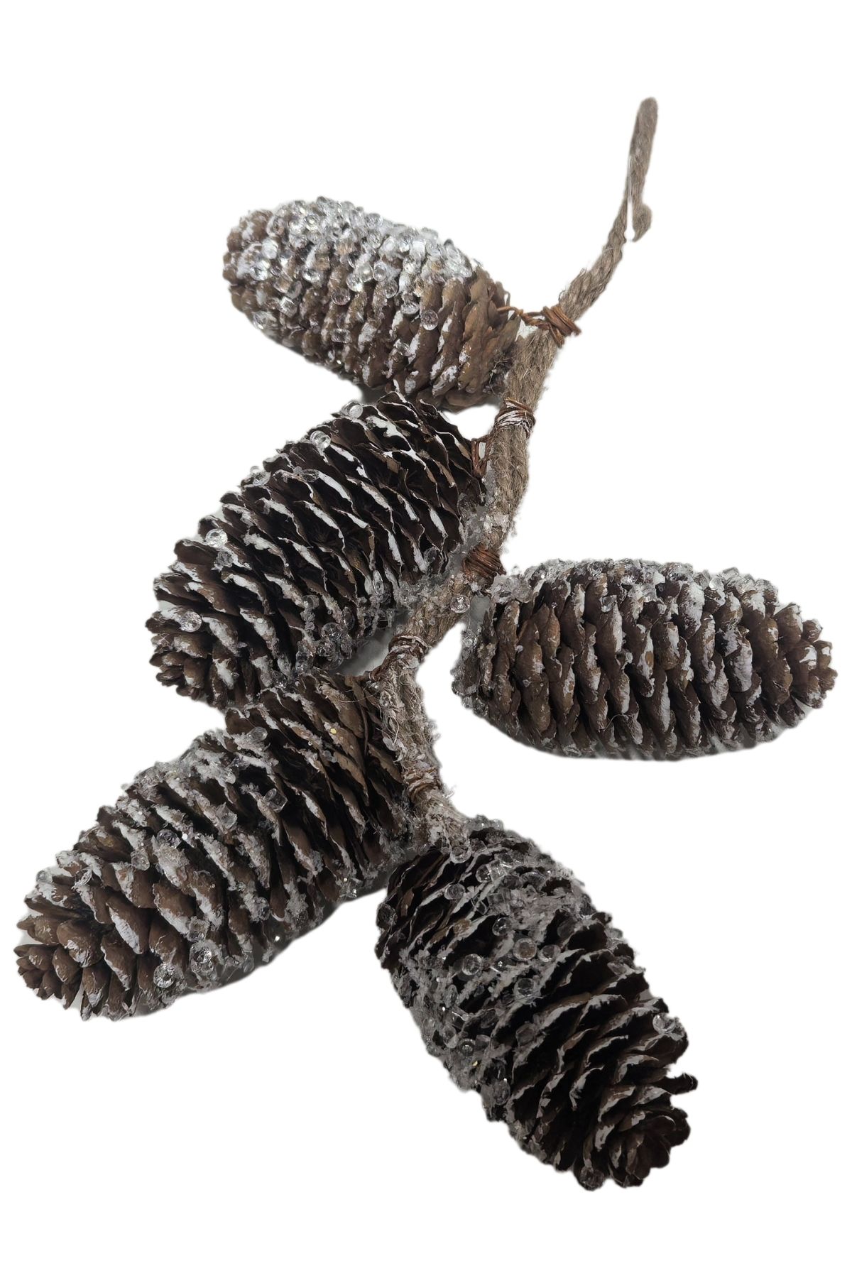 Tieto šišky s machom a jemnou námrazou vyzerajú naozaj skutočne. Jemná, akoby námraza, dodáva šiškám skutočný zimný nádych lesa. Je možné ich použiť ako vianočnú dekoráciu na vianočný stromček, do rôznych aranžmánov či ikebán.