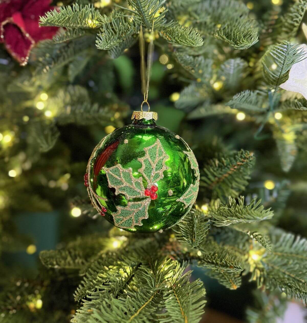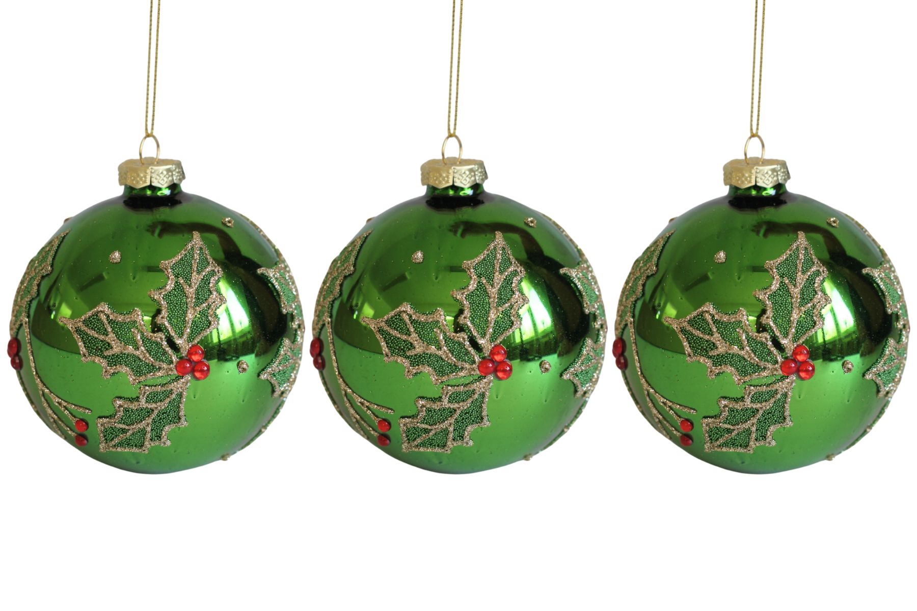 Krásne, detailne vypracované sklenené gule sú neprehliadnuteľnou ozdobou každého vianočného stromčeka. Zelená farba patrí k tradičným Vianociam.