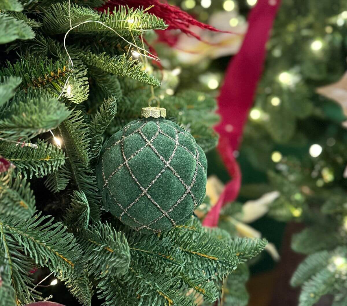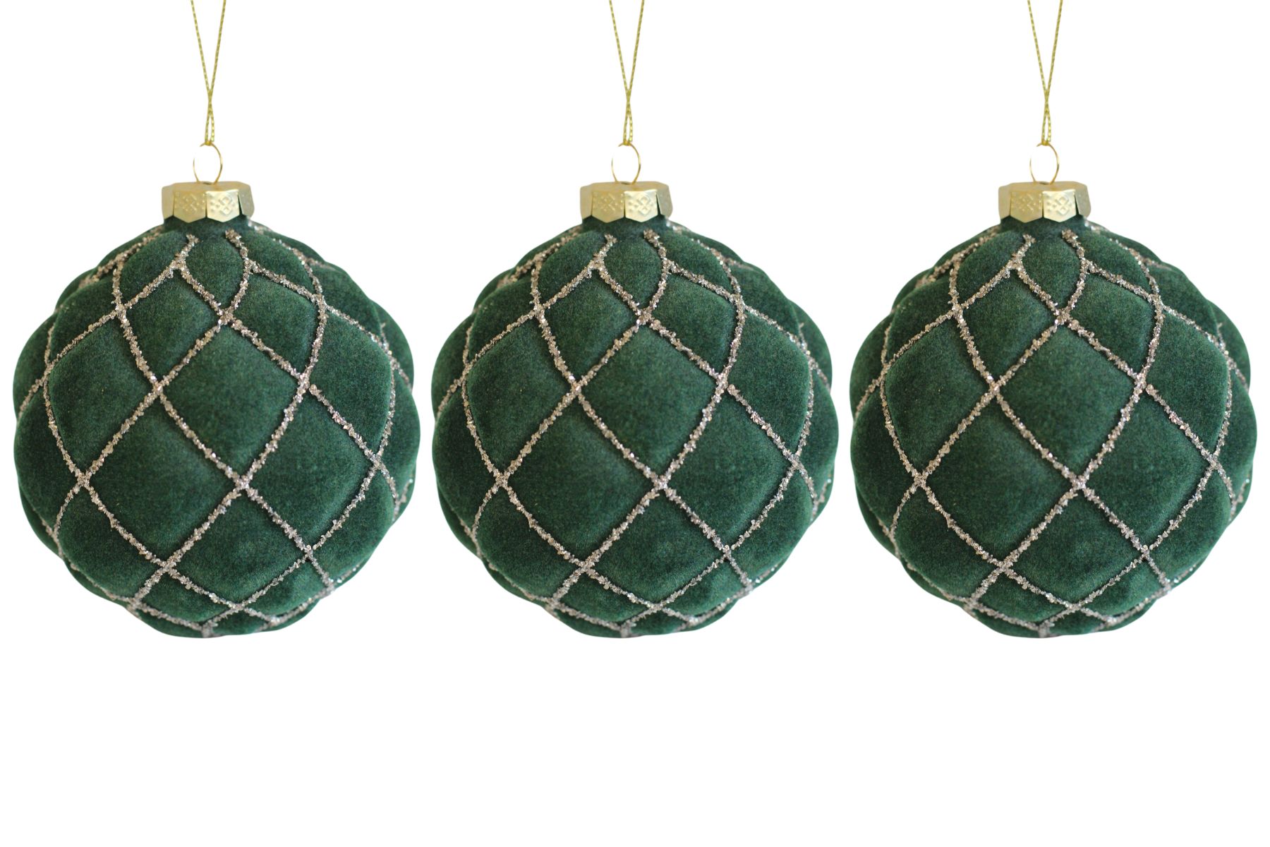 Krásne, detailne vypracované zamatové gule sú neprehliadnuteľnou ozdobou každého vianočného stromčeka. Zelená farba patrí k tradičným Vianociam.