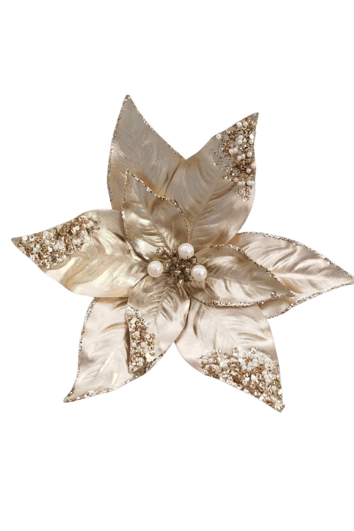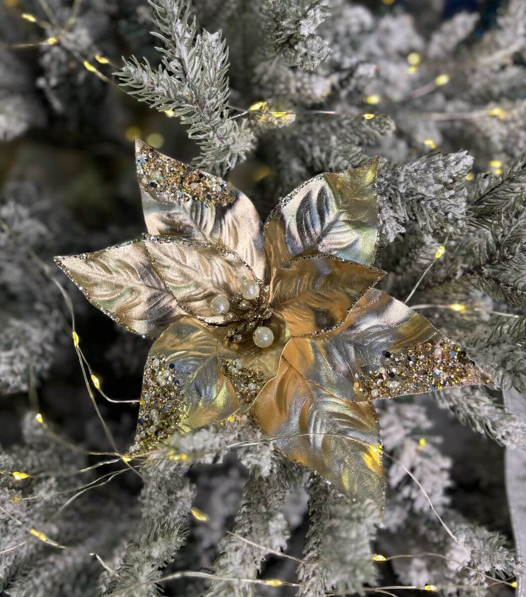 Zlatá vianočná ruža na štipci 22cm