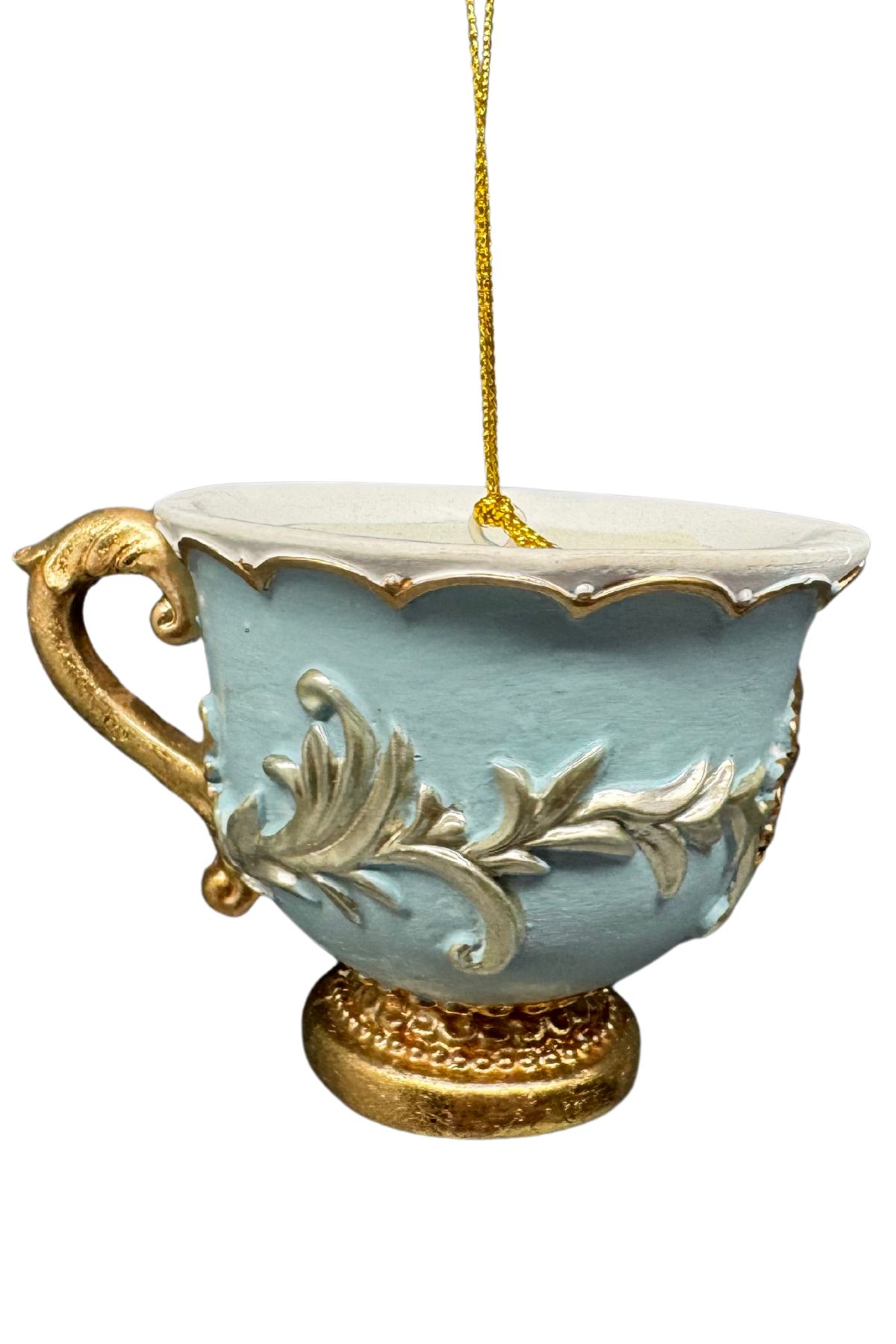Zlato modrá šálka je vhodná ako vianočná ozdoba na vianočný stromček, taktiež ju môžete použiť do rôznych vianočných dekorácií a aranžmánov