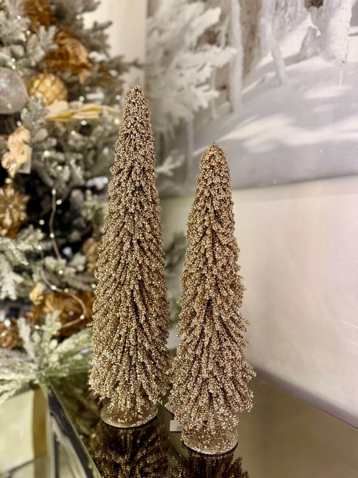 Vianočná dekorácia v tvare vianočného stromčeka v zlatej farbe je ideálna do moderného, klasického aj glamour interiéru a môže sa stať neprehliadnuteľným detailom vašej vianočnej výzdoby.